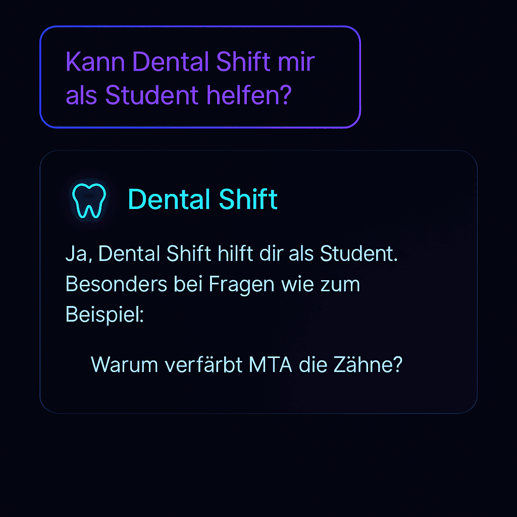 Neben meiner klinischen Tätigkeit beschäftige ich mich mit digitalen Technologien und künstlicher Intelligenz im Gesundheitswesen. Mein Fokus liegt auf Systemen, die komplexe Inhalte verständlich strukturieren und im zahnmedizinischen Alltag einen echten Nutzen bieten.